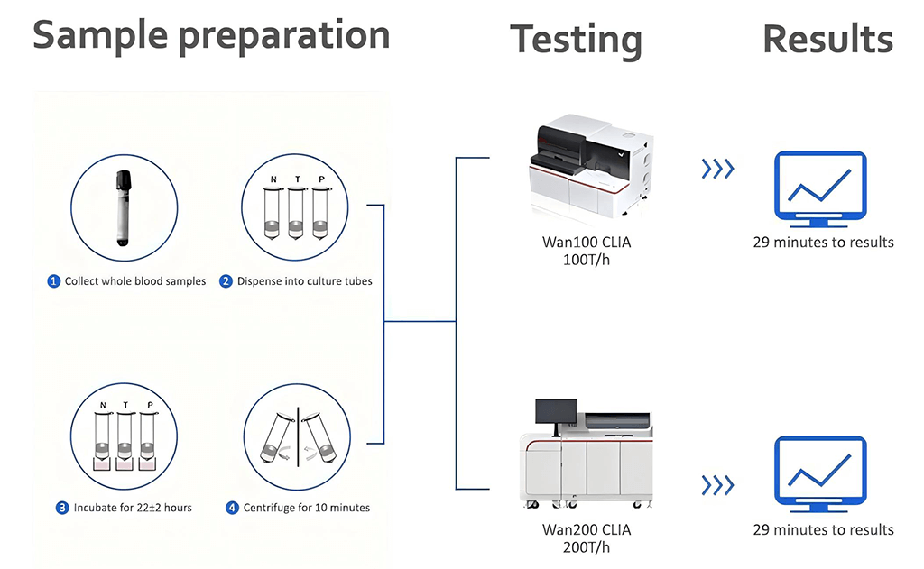 Wantai’s TB-IGRA CLIA is intended for use as an aid in the diagnosis of TB infection including both latent Tuberculosis infection and Tuberculosis disease. The test is a quantitative chemiluminescence (CLIA) assay for detection of Interferon Gamma (IFN-γ) that responds to in-vitro stimulation by Mycobacterium Tuberculosis antigens in human blood samples.