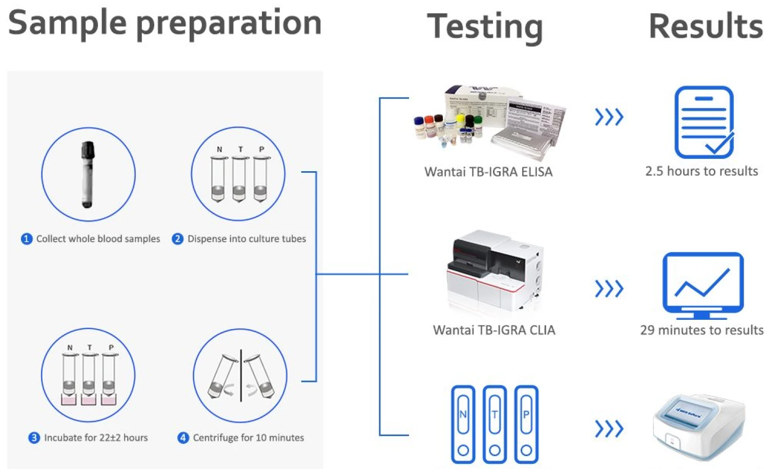 Wantai’s TB-IGRAs (Interferon Gamma Release Assay) are intended for use as an aid in the diagnosis of TB infection including both latent Tuberculosis infection and Tuberculosis disease.